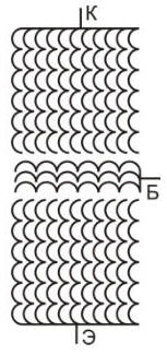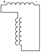 Рассмотрим принцип создания межобмоточной емкости. Простым примером является обычный трансформатор. Обратите внимание на изображение сердечника, это именно емкость! Энергия колебательного контура первичной обмотки переходит в намагниченность материала сердечника, а в случае с сетевыми трансформаторами мы имеем 50-ти герцовый, безынерционный резонансный контур. Так как металл практически не обладает инерцией перемагничивания, напряжение на выходе не сильно отличается от «расчетного». Взаимодействие же вторичной обмотки и все влияния обмоток друг на друга происходят только через эту емкость.