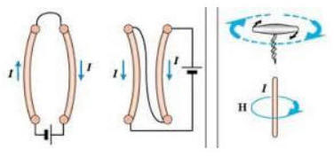 «Из закона Ампера следует, что параллельные проводники с электрическими токами, текущими в одном направлении, притягиваются, а в противоположных — отталкиваются:
