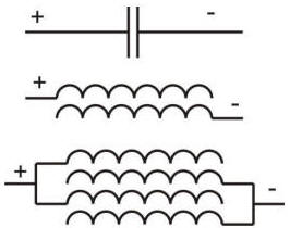 Рассмотрим применение резонансной емкости вместо обычной в контуре. Для этого нужно заменить обычную емкость на автоколебательную. Измерение межпроводной емкости до намотки (и после) можно принять только как статистические данные, так как при росте амплитуды колебаний внутри контура, растет и сама емкость. Во многих случаях оказывается достаточным соблюсти длины проводов LC контура, дальнейшую вихревую синхронизацию устройство выполнит само. Обратите внимание на то, что плоскость автоколебательной емкости перпендикулярна индуктивности!