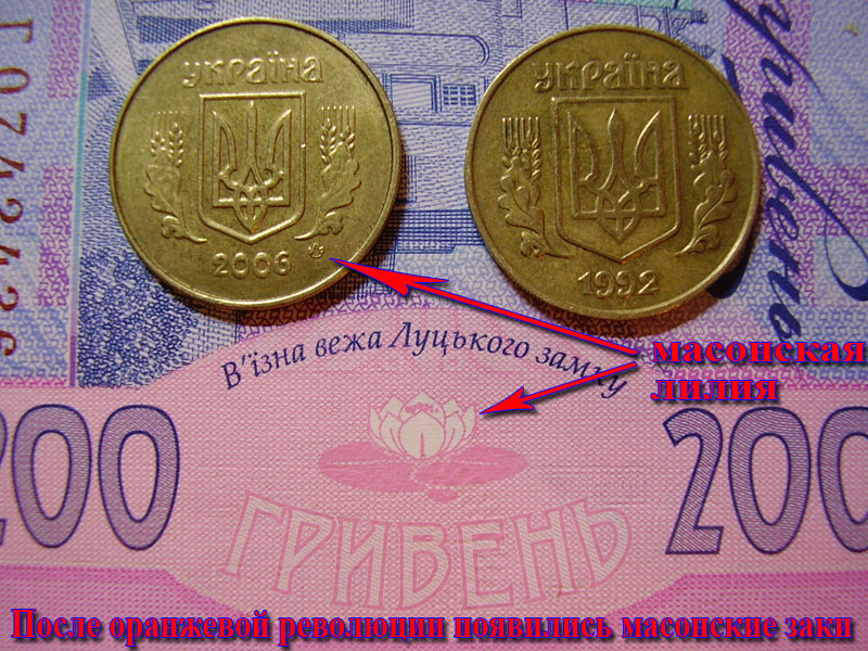 2) После "оранжевой революции" на всех украинских монетах со стороны герба стоит лилия - символ франкмасонов: