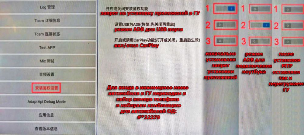 №❶ (включен по умолчанию) — вкл/откл запрет (проверку) на установку приложений в ГУ. Включен — запрет. Выключен — разрешено. Выключить в начале установки и больше не включать.