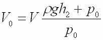 Это вычислен объем воздуха уже сжатый столбом воды в водопроводе, а первоначальный объем воздуха в сухом гидротаране, т.е. емкость воздушного аккумулятора над клапаном 2 должна быть не меньше: