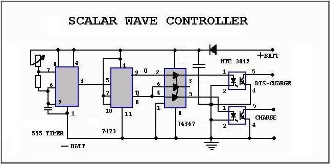 Ещё схема Рона Кола. Частота от 10 Гц до 500 Гц. Рона Кол никогда не говорил, что эта за схема. Но она выглядит аналогично скалярному переключателю батареи Билла Нельсона.