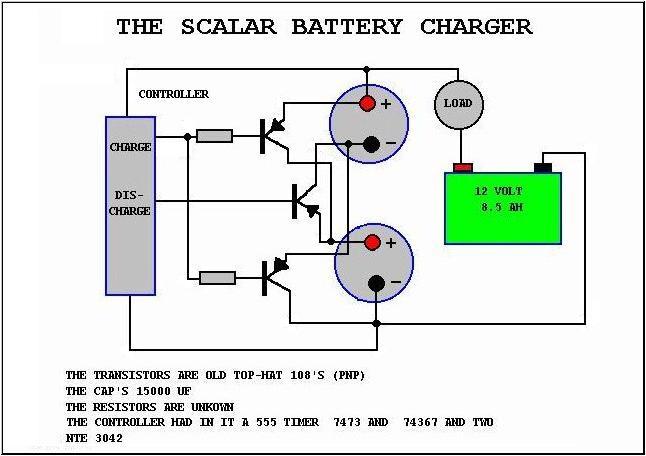 Схема, которую дал Билл Нельсон Джону Бедини. Бедини никогда не воплощал её. Бедини считает, что в схеме есть неточности. Но это лишь схема в общих чертах, полученная Бедини от Нельсона. ПРЕДУПРЕЖДЕНИЕ! Батарея может взорваться, если вы ее неправильно подключите. Стройте на ваш собственный риск. Удачи! Джон Бедини.