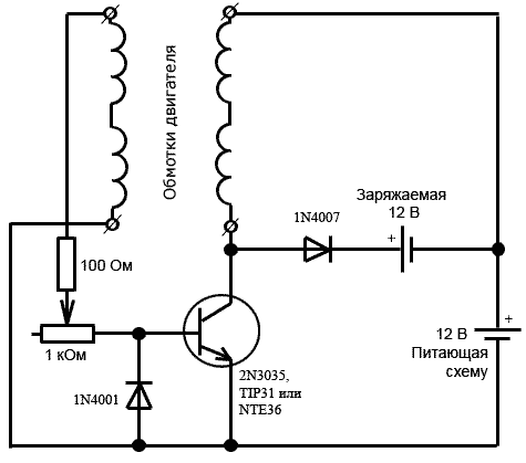 Помните, что батареи используемые для работы с радиантной энергией должны пройти много раз цикл разряда – заряда прежде чем они адаптируются для работы с новой энергией. Когда это произойдет, емкость батарей значительно увеличится, а время заряда – сократится. Вот практическая схема, которая аналогична самой первой, только в другом виде и служит для заряда аккумуляторов: