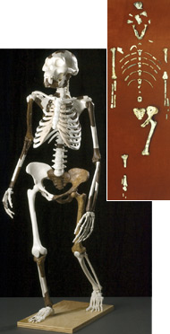 Также нет ни одной достоверной переходной формы обезьяночеловека. Например, австралопитек (южная обезьяна, к этому виду относится и знаменитая Люси) не является переходной формой и не занимает промежуточного состояния между человекообразной обезьяной и человеком, так как отличается от них намного больше, чем человекообразная обезьяна отличается от человека.