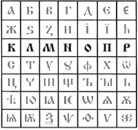 Древнеславянская Буквица имела 49 Буквиц. Для перевода Библии на наш язык Кирилл и Мефодий переделали нашу древнеславянскую буквицу и дали буквам греческие названия, а непонятные им буквы убрали (те, которых не было в греческом). Ярослав Мудрый своей мудростью убрал еще одну букву. Реформатор Пётр I убрал пять. Николай II еще три. После революции 1917 Луначарский убрал три и добавил букву ''ё''. Луначарский убрал образы из Буквицы оставив только фонемы, т.е. язык стал без образным = безобразным. Эта кастрация языка ведёт к деградации не только языка, но и ума людей, которые пользуются этим языком. Подробней о Буквице.
