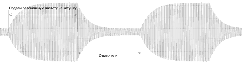 [09.10.2017] Определив по катушке её время раскачки и затухания, то можно определить её частоту амплитудной модуляции при которой можно создать максимальные динамические изменения в среде. Именно эта частота будет максимально эффективной для такого режима амплитудной модуляции. На примере (рис) Мишин в чате показал осциллограмму тора с частотой резонанса ~ 300 кГц, который можно промодулировать частотой до 2500-2800 Гц.