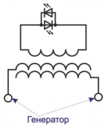 3 способ. Если нет осциллографа, то можно найти резонанс с помощью двух встречно включённых светодиодов. На трёх пальцах мотаем катушку в 30 витков. Концы соединяем со встречно включёнными светодиодами (рис 5). Изменяя частоту ищем максимальное горение светодиодов, потом снижаем амплитуду с генератора ещё раз ищем максимальное свечение светодиодов меняя частоту и так пока не найдём нашу рабочую частоту (резонанс).