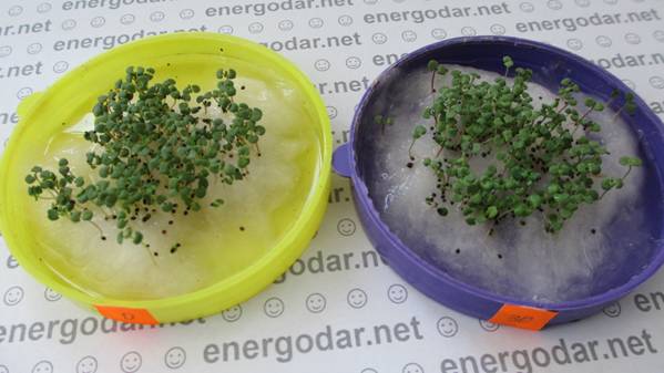 Каждая группа семян была помещена во влажную среду, т.е. обычная крышка + вата + вода, а черенки стояли в маленьких пластиковых стаканчиках с водой. Все подопытные постоянно находились в одинаковых условиях (температура, освещение и т.д.)
