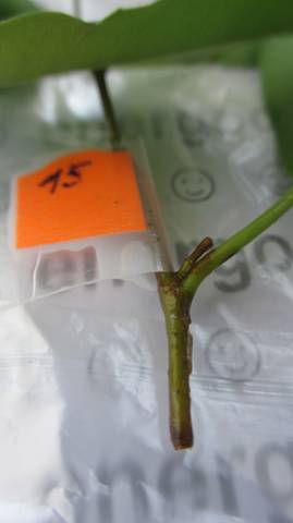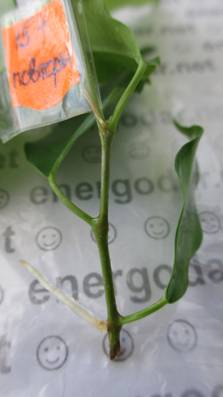 И черенок с обработкой, повторяющейся через день с корешком (внимание на левую сторону).