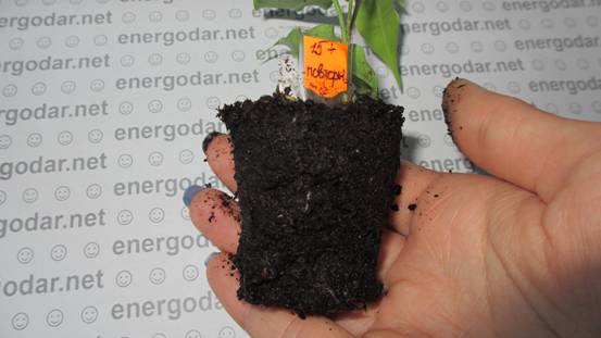 При извлечении земляного кома из стаканчика он не распадается – полностью держится корнями.