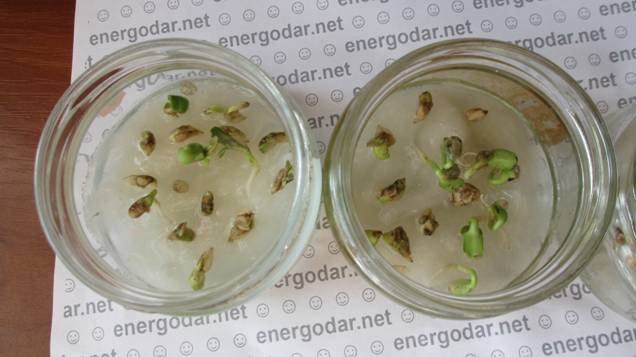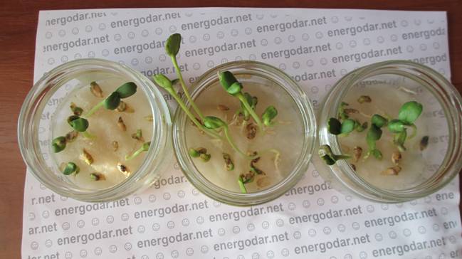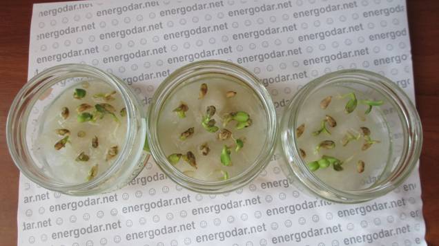 На этом обработка семян была прекращена. И для подведения окончательных итогов сделаны фотографии через трое суток после окончания обработки.