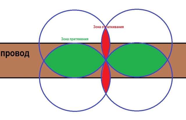 Рис. Упрощённая модель выстраивания вдоль проводника без электро магнитной составляющей