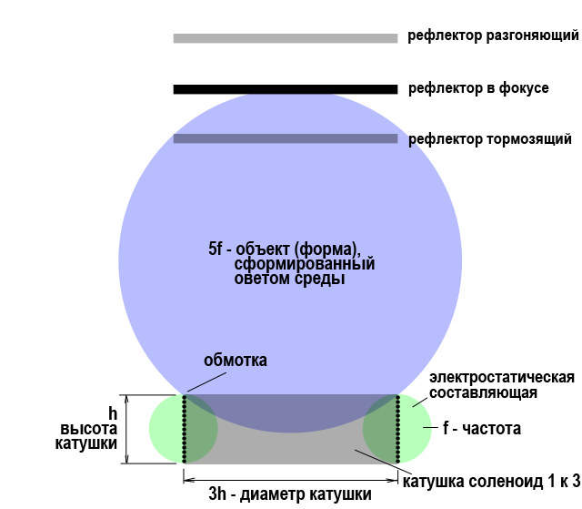 Т.к. провод - это объект с сильно искажённой формой, т.к. длина намного длинней диаметра провода, Этот объект высокочастотный, т.к. диаметр провода очень мал. Но свивая провод в катушку мы формируем уже более гармоничный низкочастотный объект из высокочастотного. Например катушка 1 к 3 при подаче сигнала сформирует объект по частотам 1 к 5