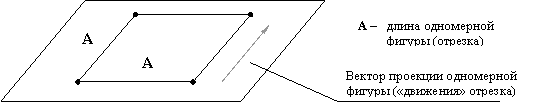 Далее. Вот мы перешли к двухмерному пространству. Вот сейчас мы перейдем к проекции. Т.е.мы имеем, что на сей момент – какой-то отрезок одномерного пространства. Чтобы получить его структурную характеристику в двухмерном пространстве, мы должны провести проекцию к длине отрезка и на длину данного отрезка. И это я запишу следующим образом: "а" первого пространства, первой мерности спроецирован на "а" первой мерности. Сколько здесь у меня? - Две мерности. И что у меня получилось? - Четыре.