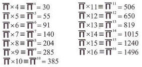 Провожу аналогию. Вы только что записали ровную систему умножения. Берете систему двухмерного умножения Ровны. Вот смотрите, у нас малая пирамида, она имеет 5. чтобы получить третий ряд, я должен поставить ровно на три, т.е. добавить девять. 5 + 9 будет 14. потом я следующий ряд добавляю 4 на 4, т.е. из 16-ти, получаю 30. Т.е. понятно здесь, пирамида ЖДЫ пять пятьдесят пять. И так до 16.