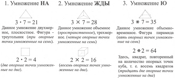 Но это как бы структурные, но еще было множество других умножений. Допустим, ровное умножение, когда считались какие-то ровные числа., ровные объемы. Т.е., что для этого необходимо было. И заметьте, в школе написали три в кубе, три в третьей степени.