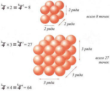 Читается так: ровно НА два будет четыре. Для трёхмерной читается так: ровно ЖДЫ два будет восемь. А далее все записи по аналогии в отношении трехмерной Ровны.)