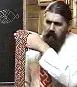 Но на мне, на моей рубашке – вышивка более крупная, а на поясе – это плетение. Плели по-разному – плели на сволочках (?), плели на квадратиках. Со временем научитесь разным видам плетения, но главное – азы. Если кому будет не понятно плетение на квадратиках, если я недостаточно понятно объяснил, подойдете к Светомиру, у него уже есть свои наработки, свое ноу хау. И он вам не как плести объяснит, а сам Образ. А до остального вы уже будет доходить своими мозгами, чтобы у каждого были свои наработки, а у вас – свои. Т.е. почему? Он объяснит сам Образ. Допустим, я - Образ, его он - Образ, два Образа наложились в крупный Образ, и эти Образы откроют в вас, в Родовой памяти, плести так, как плели ваши Предки. Плохо, когда не знаешь, да еще и забудешь. Но еще хуже, когда лень вспомнить.